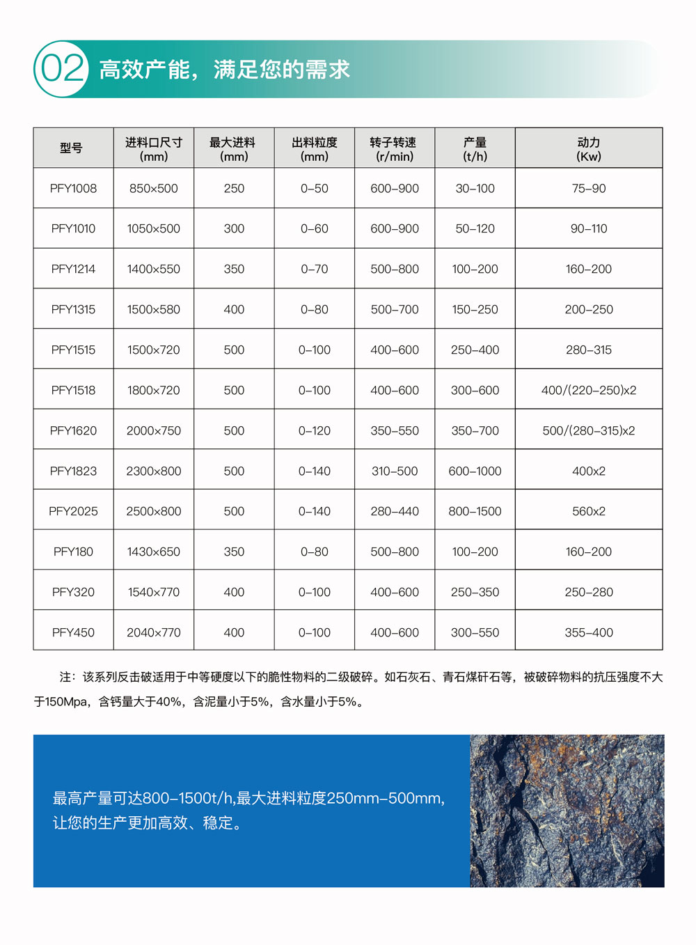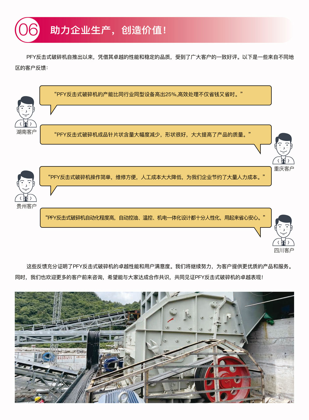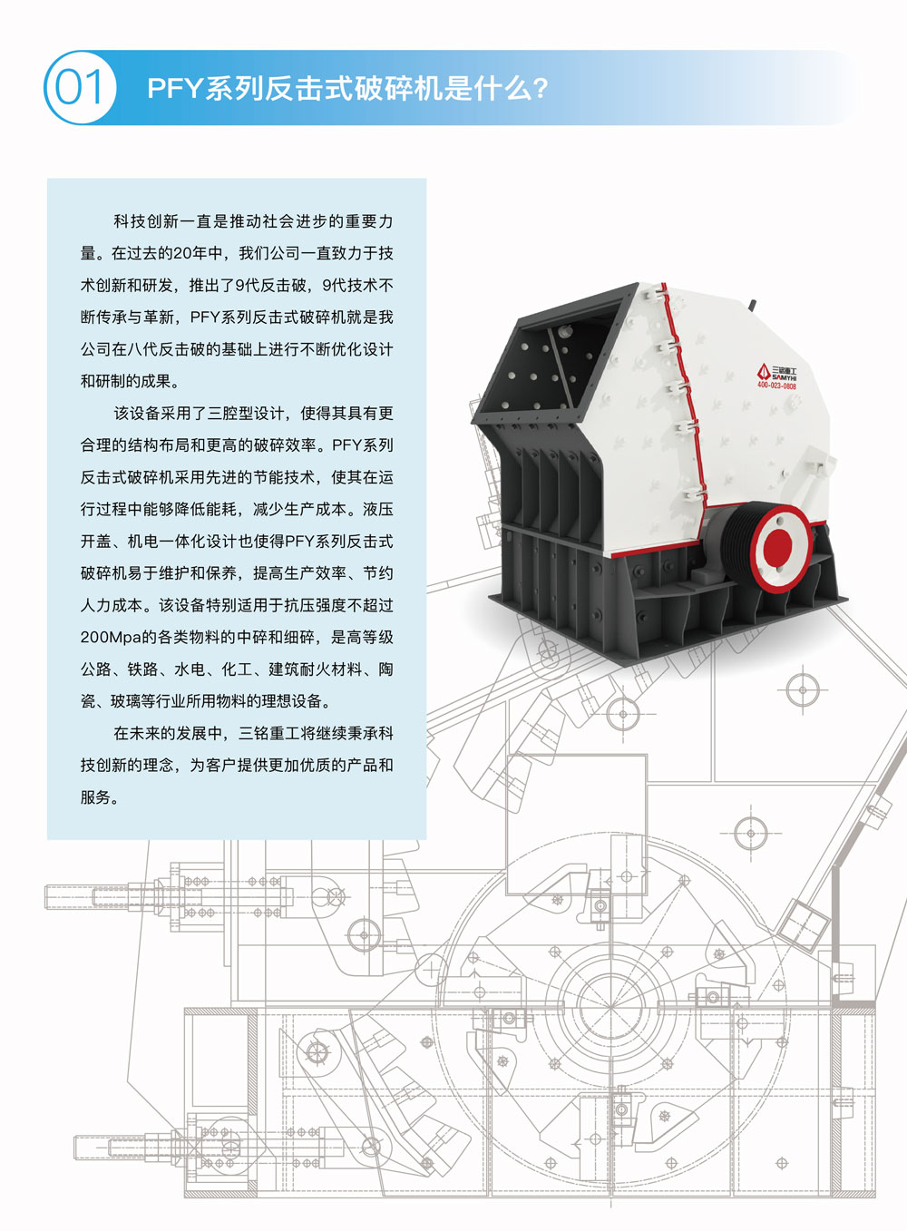 本系列產(chǎn)品是我司優(yōu)化設計而研制出的一款三腔型反擊式破碎機,具備結構合理、破碎比大、產(chǎn)量高、能耗低、維修方便等特點,特別適用于抗壓強度不超過250Mpa的各類物料的中碎和細碎,是高等級公路、鐵路、水電、化工、建筑耐火材料、陶瓷、玻璃等行業(yè)所用物料的理想設備。