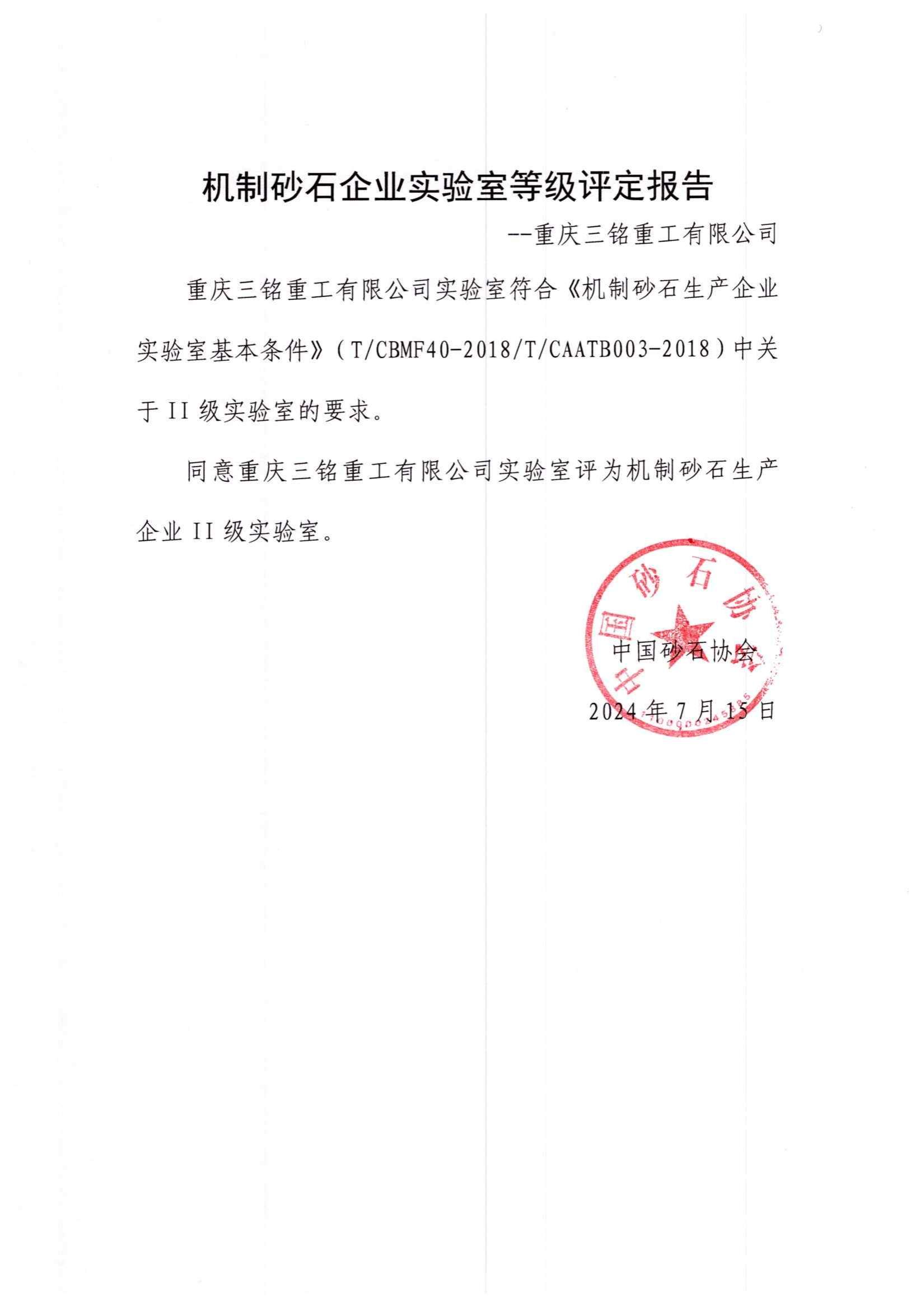 在智能與數(shù)據(jù)并行的時代,重慶三銘重工有限公司機制砂石企業(yè)實驗室成功升級至二級,權(quán)威評定彰顯技術(shù)實力。此次升級不僅是硬件設(shè)施的革新,更是對數(shù)據(jù)智能與品質(zhì)控制的深度挖掘和對客戶的莊嚴承諾。這標志著三銘重工在技術(shù)創(chuàng)新與數(shù)據(jù)應用上再次邁出了堅實步伐。