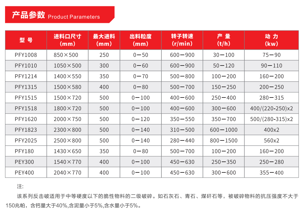 This series of products is our optimized design and developed a three-cavity impact crusher, with reasonable structure, large crushing ratio, high output, low energy consumption, convenient maintenance and other characteristics, especially suitable for the compressive strength of all kinds of materials not more than 250Mpa medium and fine crushing, It is the ideal equipment for high-grade highway, railway, water and electricity, chemical industry, building refractory materials, ceramics, glass and other industries.